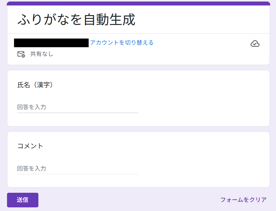 設定が終わったらテストのため、Googleフォームで回答者としてフォームに記入し、送信してください。