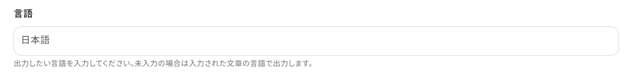 言語:今回は「日本語」と入力。言語を指定しない場合でも、入力内容から自動で判断されるため、未入力でも問題ありません。