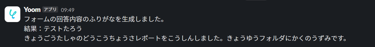 以上が、Googleフォームで回答が送信されたら、ふりがなを自動生成しSlackに送信する方法でした!
