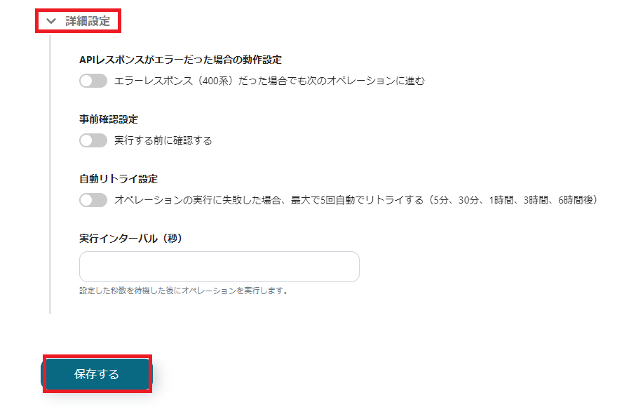 下にスクロールして、任意で詳細設定を設定してください。
