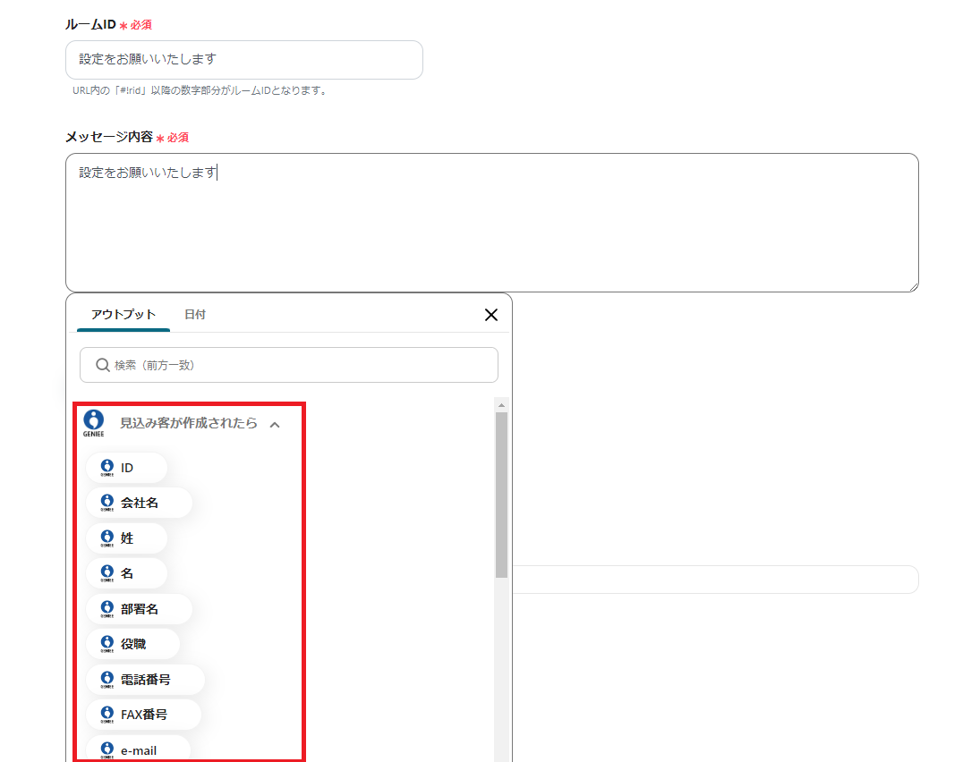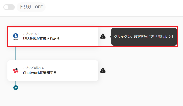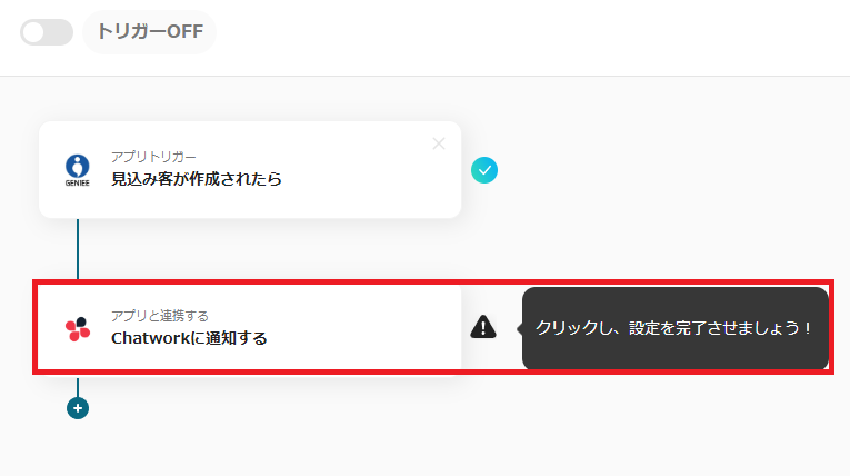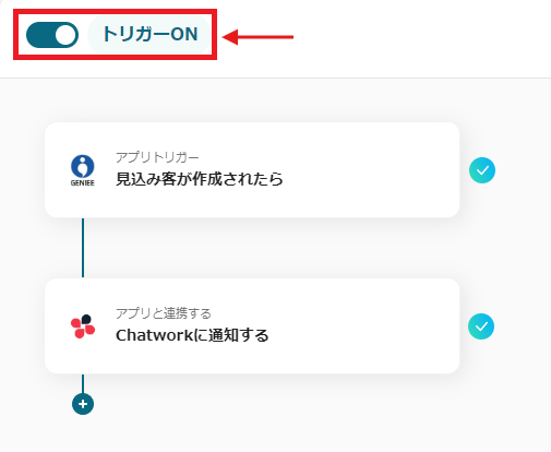 これで「GENIEE SFA/CRMで見込み客が登録されたらChatworkに通知する」の設定はすべて完了になります。