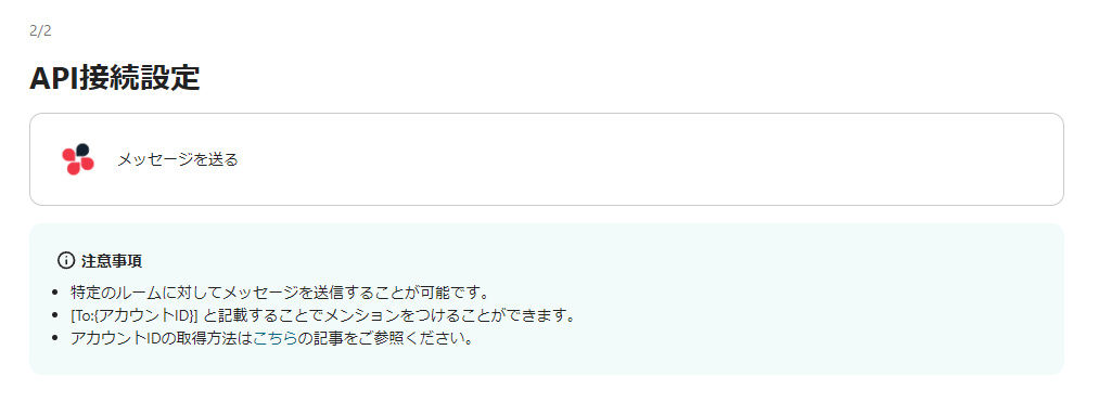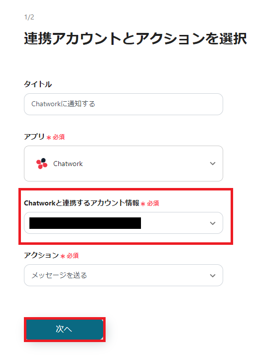 次に「Chatworkに通知する」を選択して、連携するアカウント情報を入力してください。