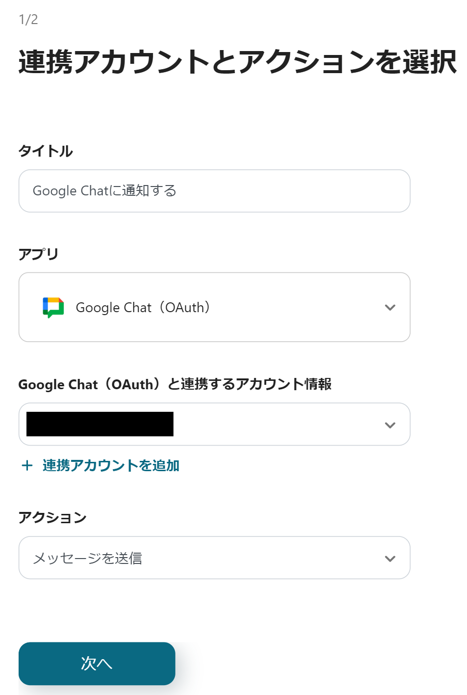 続いてGoogle Chatの設定を行うため、「Google Chatに通知する」をクリックしてください。