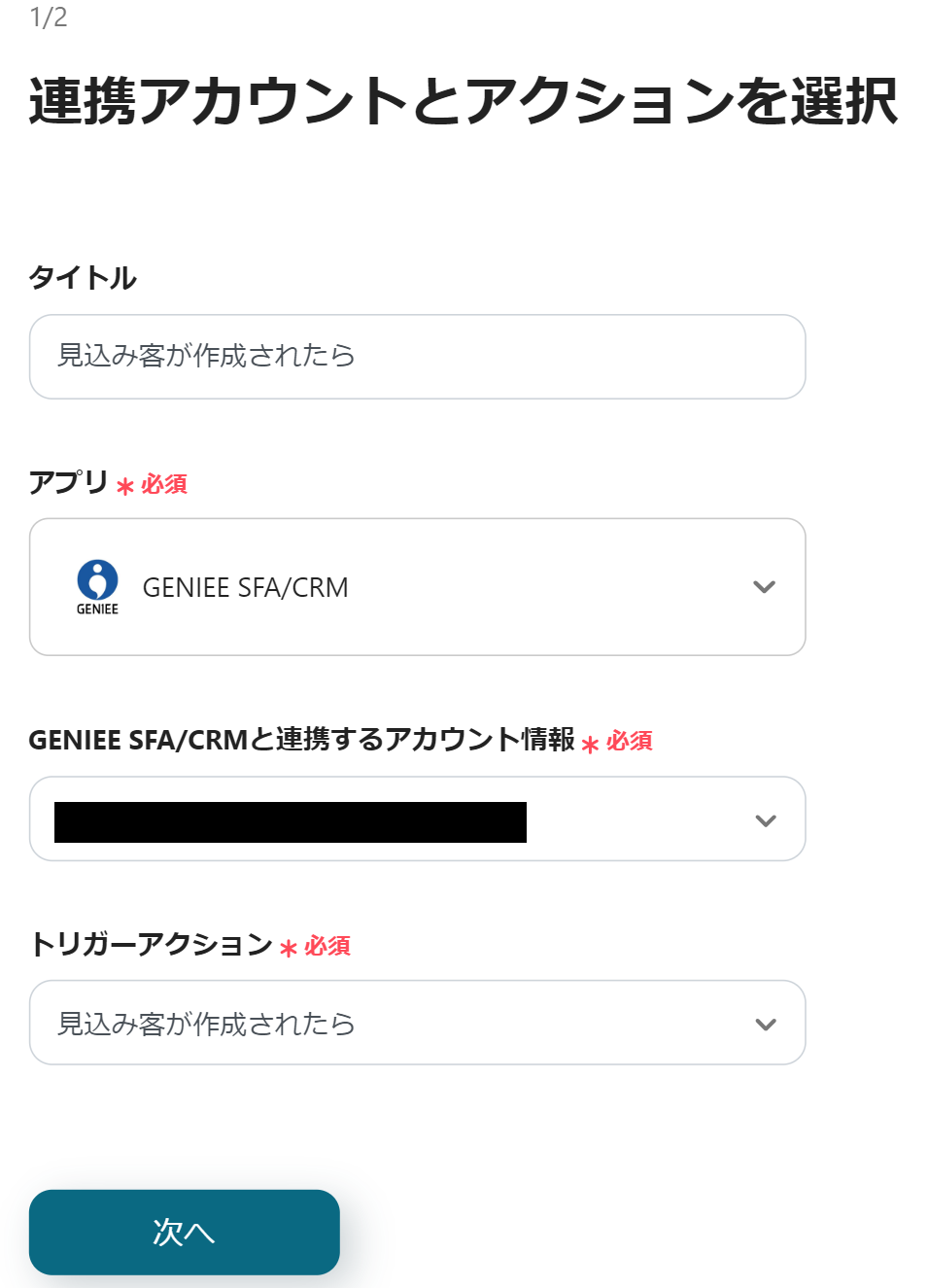 1.GENIEE SFA/CRMで見込み客が登録されたら、Googleスプレッドシートに自動追加するフローです。