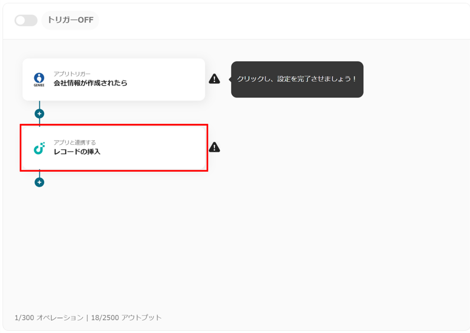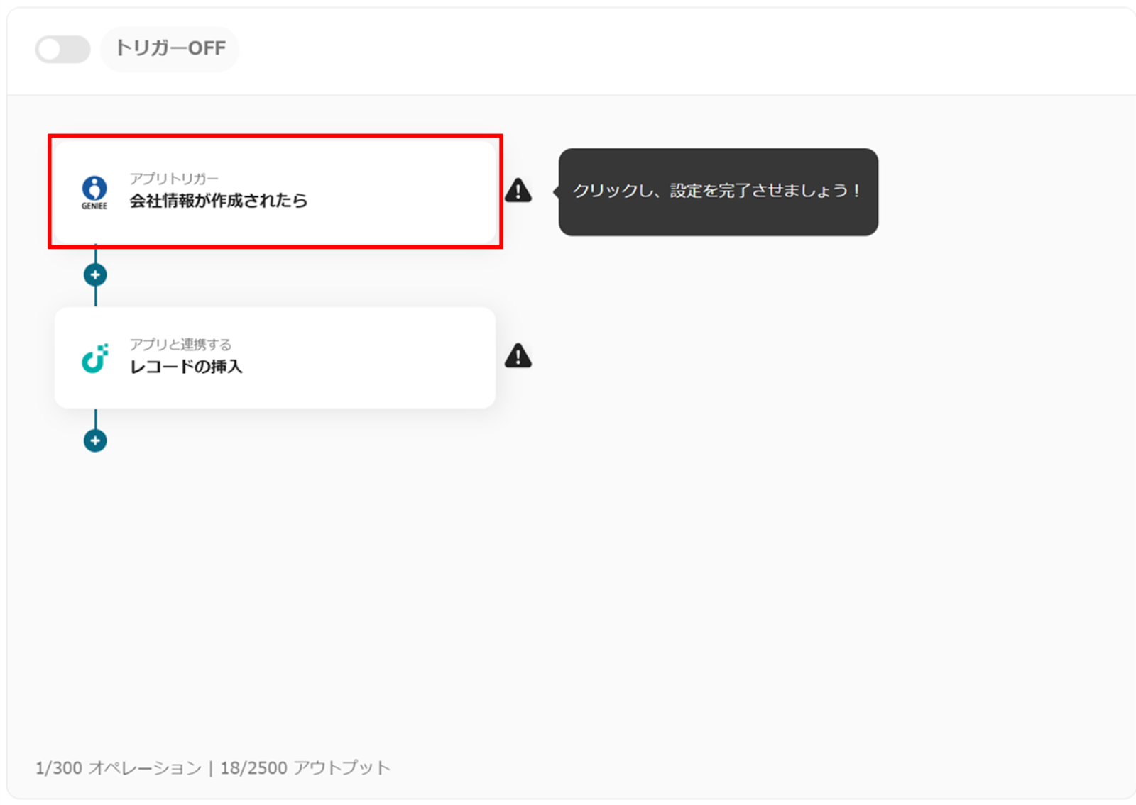 アプリトリガーの「会社情報が作成されたら」をクリックします。
