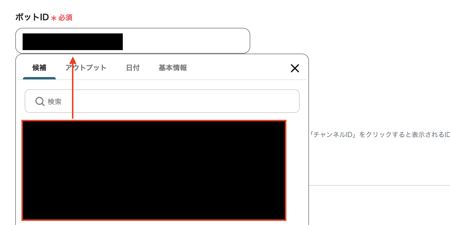 入力バーをクリックすると、連携したアカウントに基づいた内容が『候補』に展開されるので、そのなかから運用に合わせた情報を選択できます。
