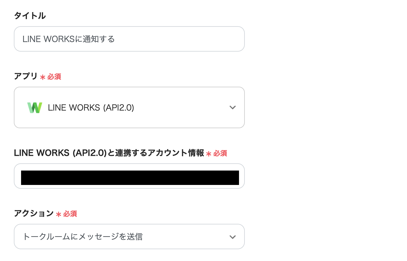 (3)次の画面で「ボットID」や「トークルームID」に情報を入力します。