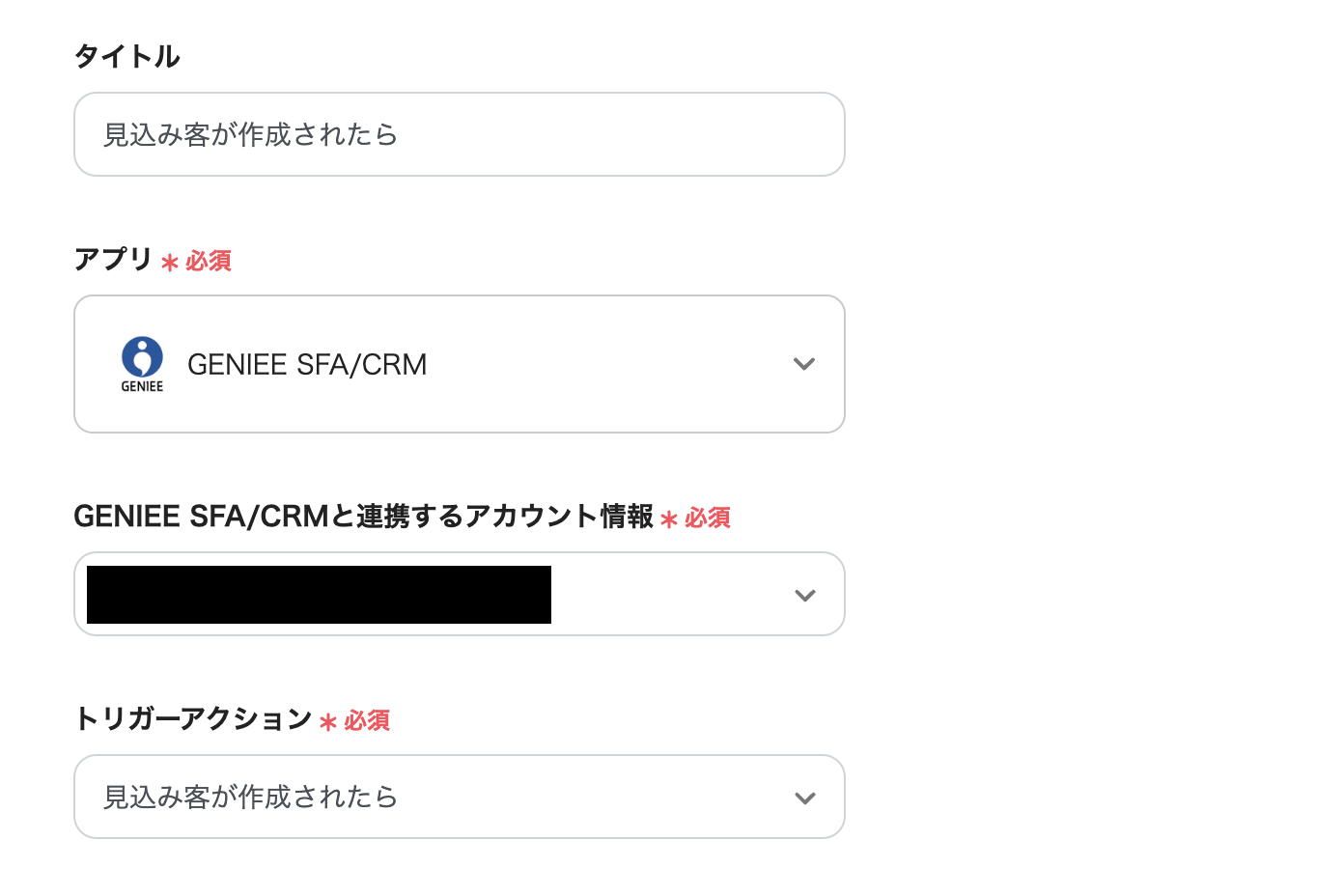 (1)まず、GENIEE SFA/CRMのアプリトリガーを設定します。