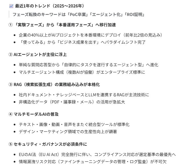 単なる一般論に終始せず、信頼できるテック系ニュースや公式サイトの情報を的確に引用し、出典元へのリンクも完備されています。そのまま社内共有できる完成度です。