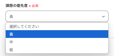 「課題の詳細」は、入力欄をクリックして表示されるアウトプットから選択します。