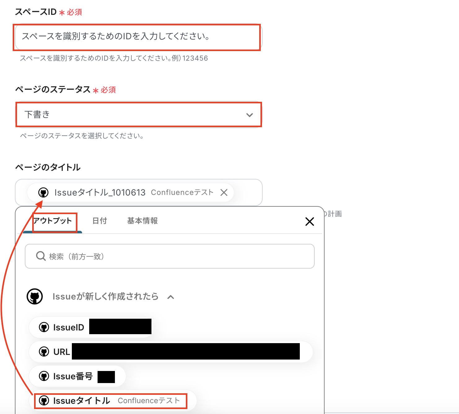 ステップ5:Confluenceのアクション設定