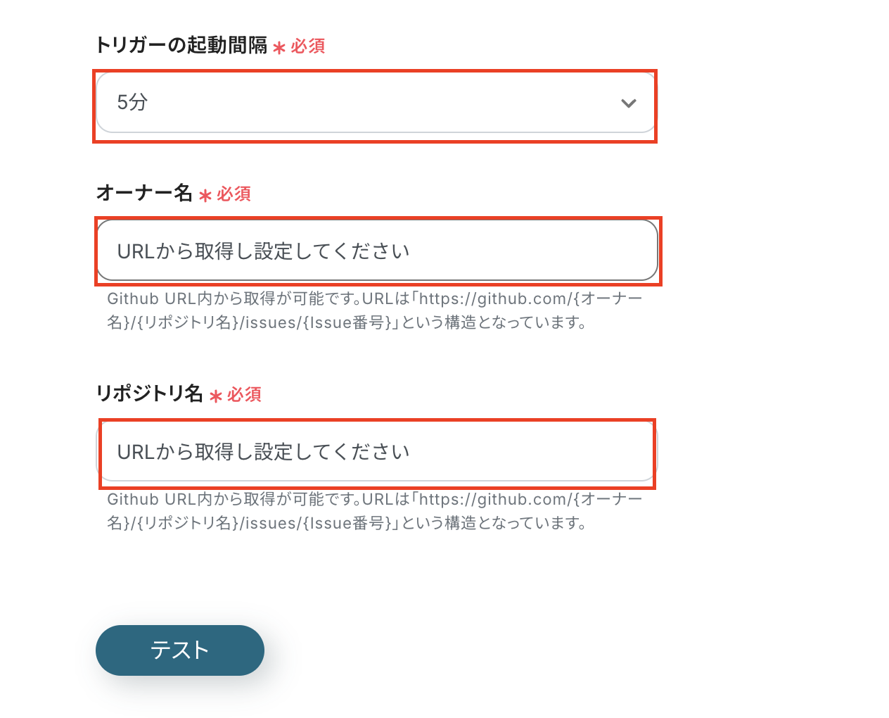 タイトルやGitHubと連携するカウントについては、トリガー設定の時と同様です。