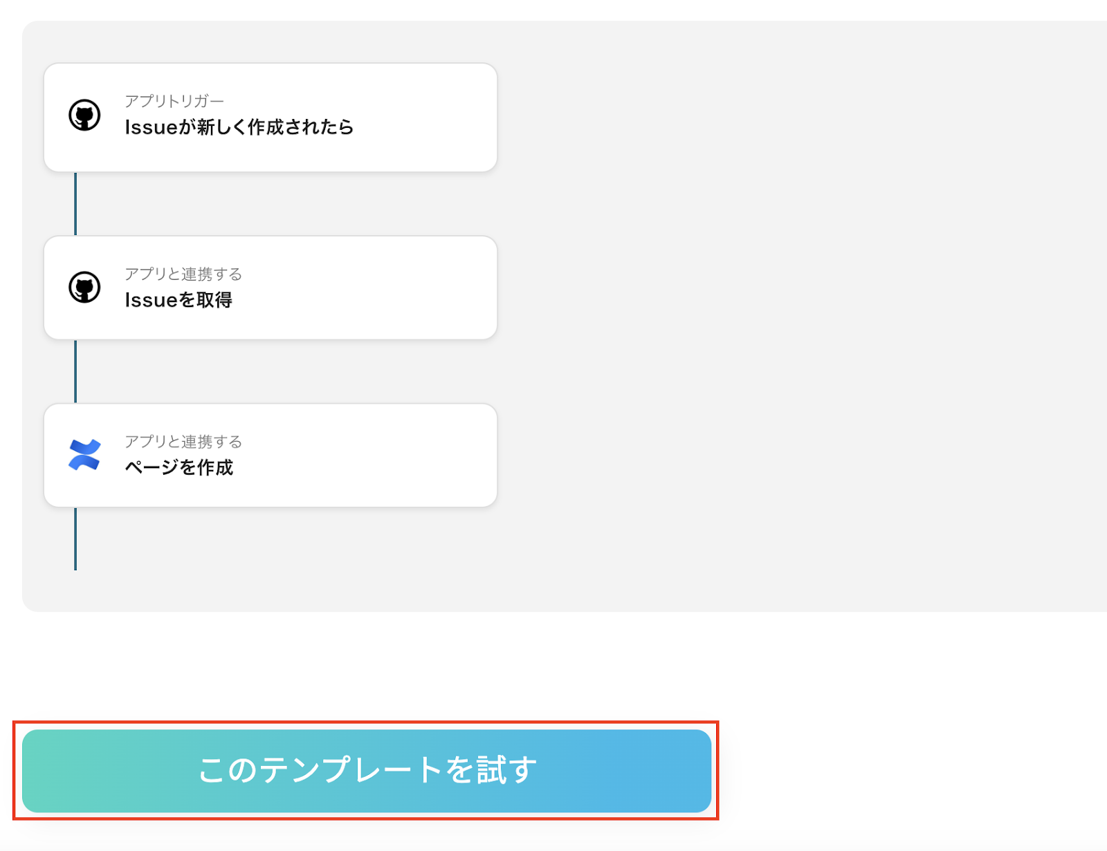 「Confluenceでページが作成されたら、GitHubにIssueを追加する」フローは、ConfluenceとGitHubの連携を活用した業務ワークフローです。