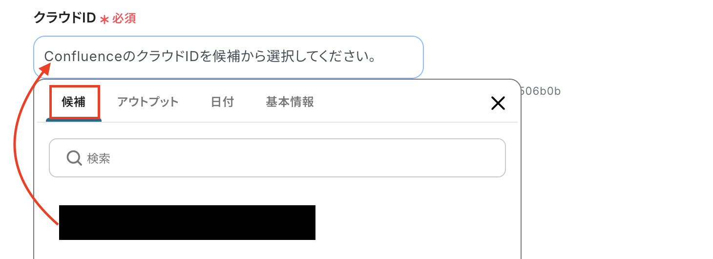 クラウドIDを候補の項目から選択しましょう。