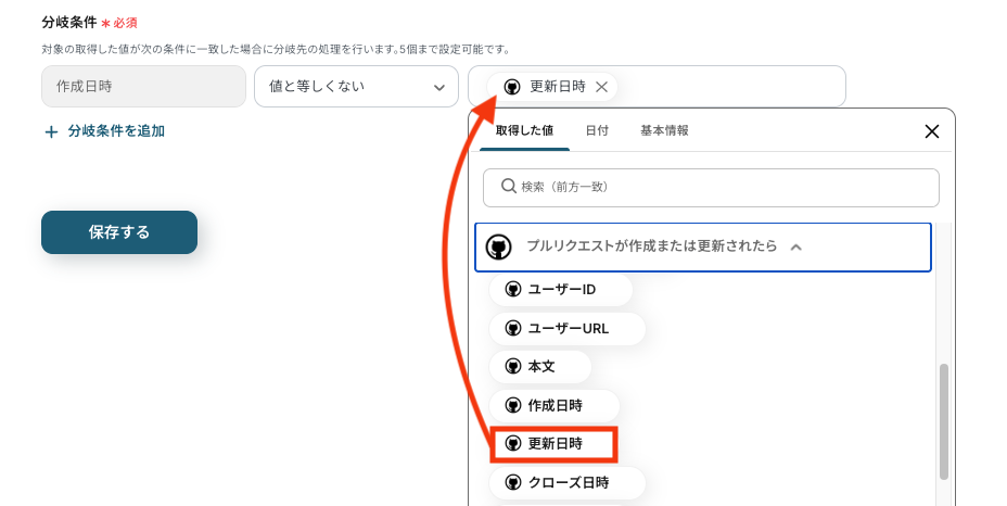Yoomの操作画面に戻り、取得した値を確認し、「保存する」をクリックします。