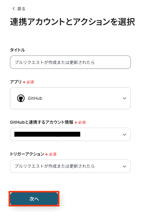 このトリガーは、GitHub上でプルリクエストが更新されたタイミングを検知して、自動処理を開始するための設定です。