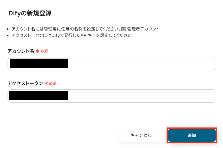 - Difyのマイアプリ連携方法はこちらをご参照ください。