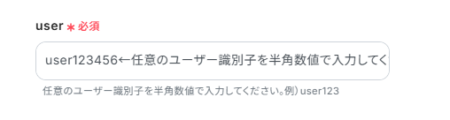 - Difyにチャットメッセージを送信するアクションでは、Difyに処理させたい内容(query)や会話の識別子(user)を任意で設定できます。フォームの回答内容などを連携してください。