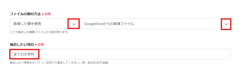 「ファイルの添付方法」では、読み取りたい画像を設定します。