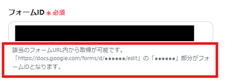 「フォームID」は、入力欄下の説明に従って、入力してください。