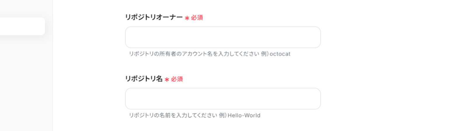 リポジトリオーナー、リポジトリ名はstep3の(3)で入力したものを再度入力します。