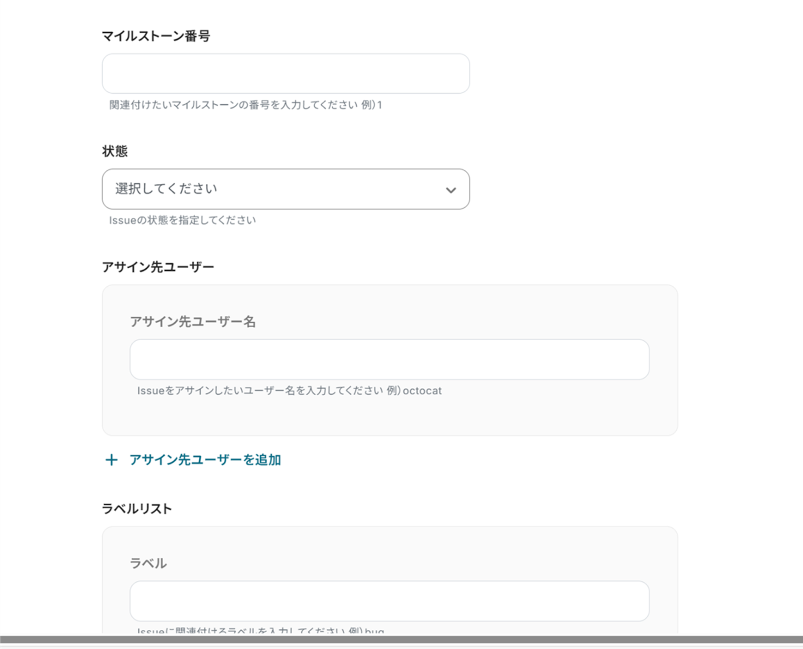 (1)GitHubに新しいIssueが作成された際の設定をします。