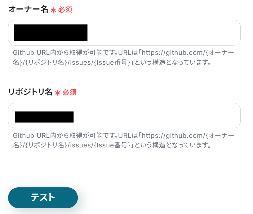 スクロールし、説明に従って「オーナー名」と「リポジトリ名」を設定します。