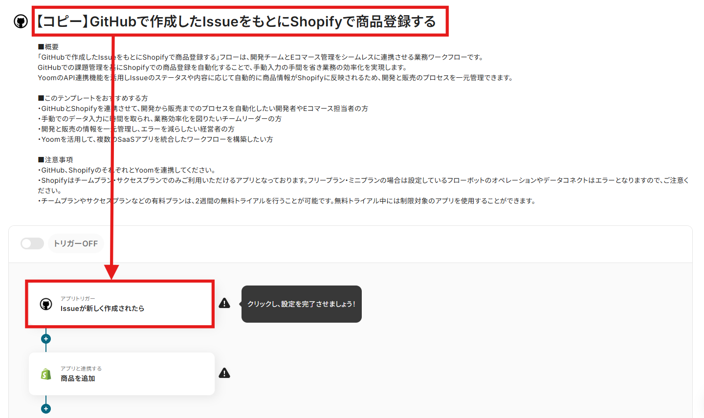 それでは、さっそくGitHubとShopifyを連携したフローを作成してみましょう!