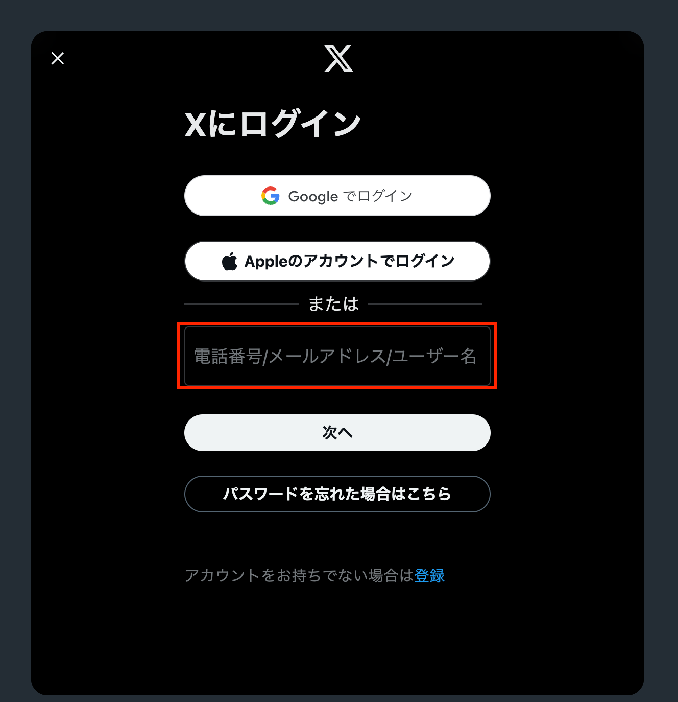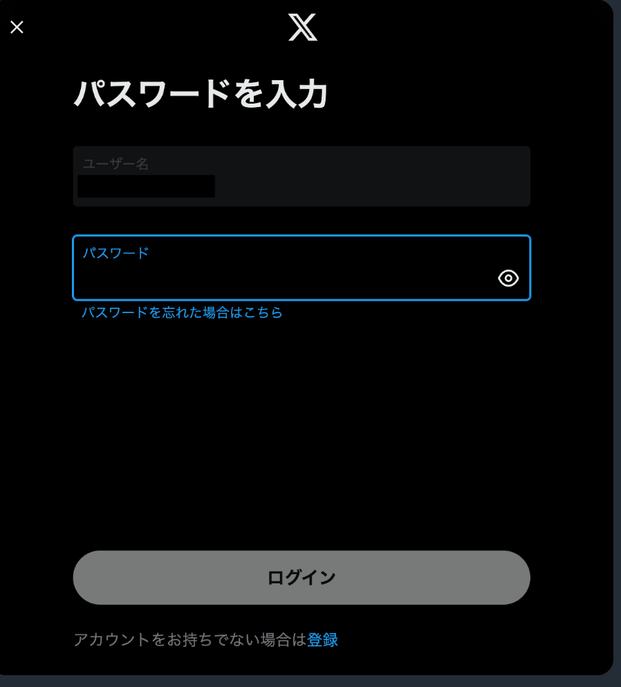 次に、X(Twitter)アカウントのパスワードを入力しましょう。