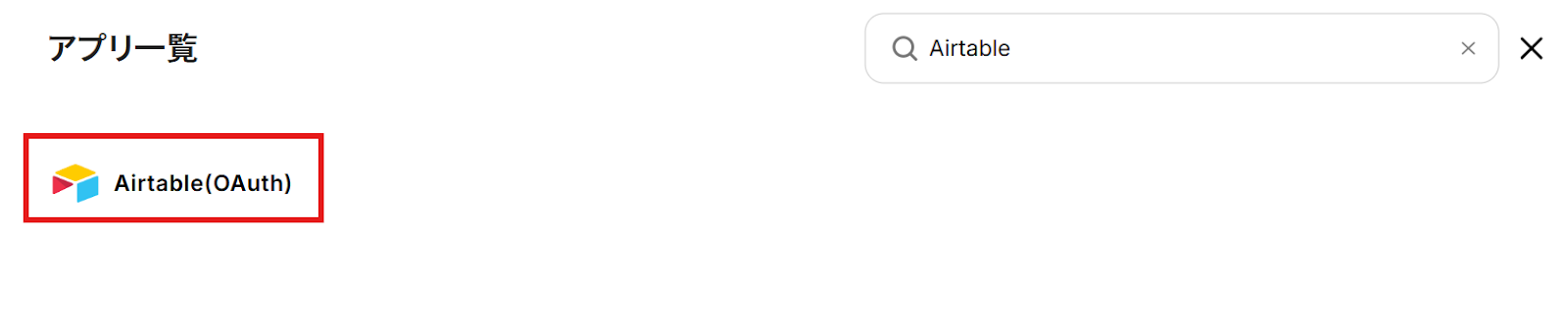 Airtableの場合も、検索するとAirtable(OAuth) が表示されるため、そちらを選んで設定を続けます。