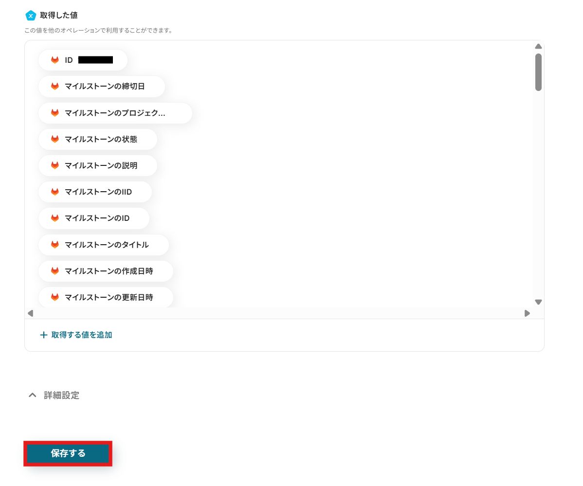 終わったら、Yoomに戻ってテストをクリックしましょう。 テストが成功すると、「テスト成功」という画面が表示され、GitLabから取得した情報をYoomで引用できるようになります。詳しくはこちら を参照してみてくださいね。 テストを終えたら、「保存する」をクリックするのを忘れないようにしましょう。