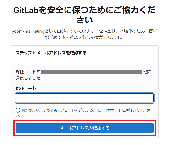 メールアドレスに届く認証コードを入力し「メールアドレスを確認する」をクリックしてください。