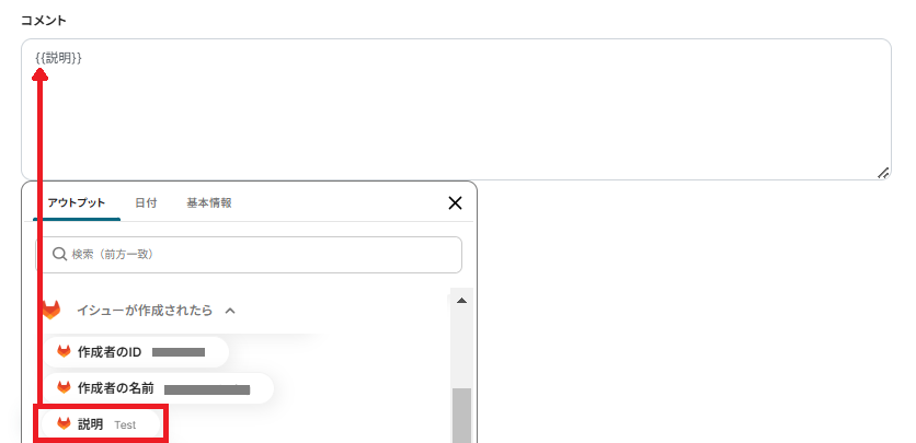 任意でコメントを入力できます。ステップ3で取得したアウトプットを利用して入力することも可能です。