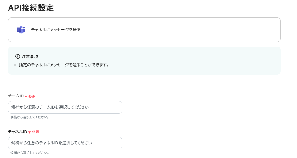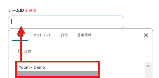 項目欄をクリックすると、連携したアカウントから候補が表示されます。 GitLabにIssueが作成されたことを自動通知したい「チームID」と「チャネルID」を、候補から選択しましょう。