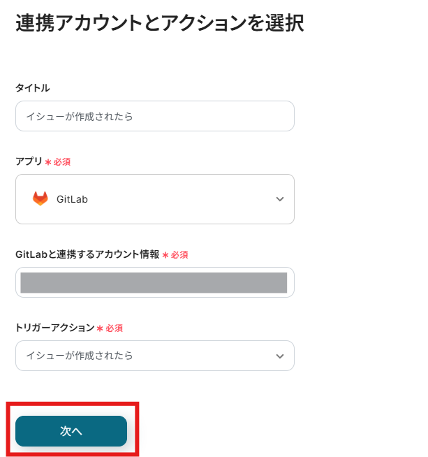 まずは、フローボットを起動させるためのトリガー設定を行います。 このステップでは、GitLabでIssueが作成されたことをYoomのAPIを用いて取得し、フローボットが自動的に起動するように設定します。