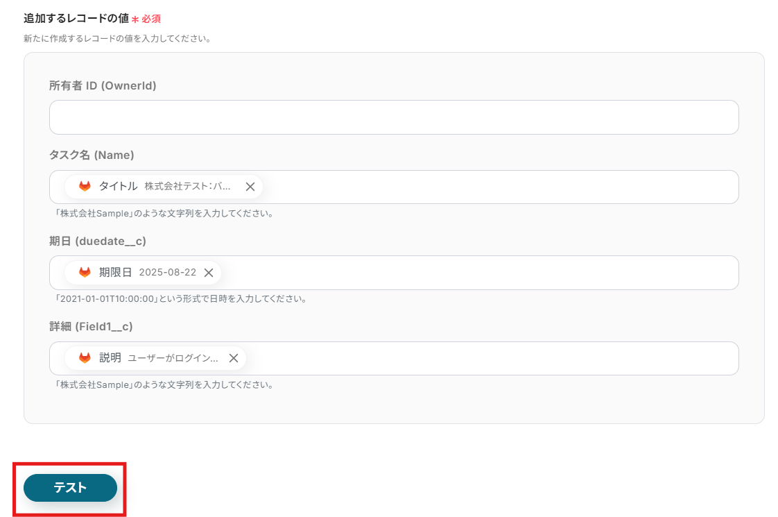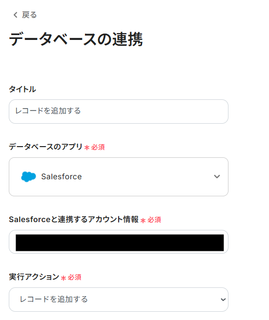 GitLabと同様に、ステップ1でマイアプリ連携したSalesforceのアカウント情報が自動で表示されます。