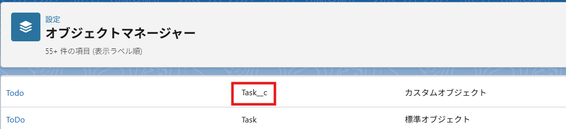 再度Salesforceに戻り、設定から「オブジェクトマネージャー」を選択します。GitLabのイシューを連携させたいオブジェクトのAPI参照名を確認しましょう!