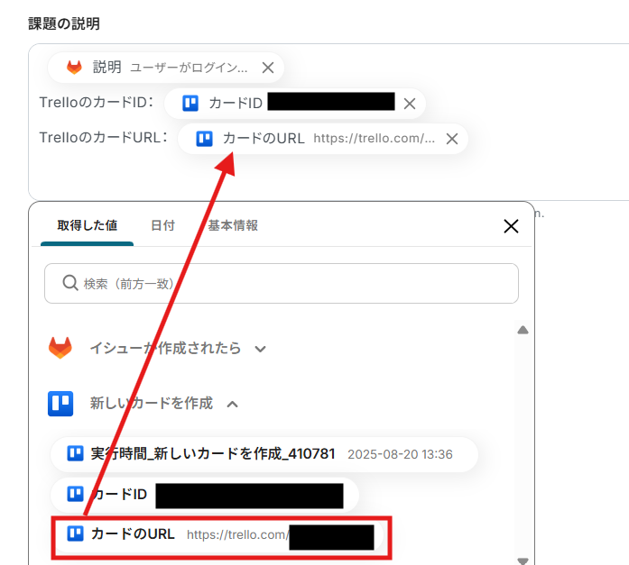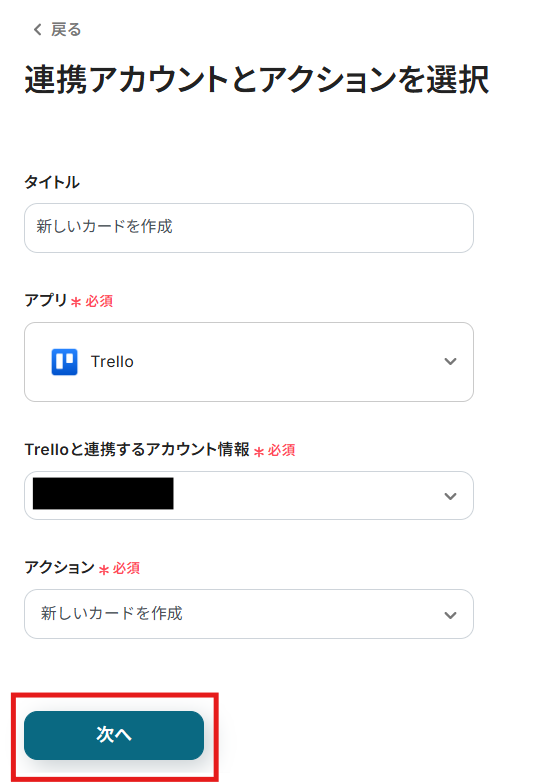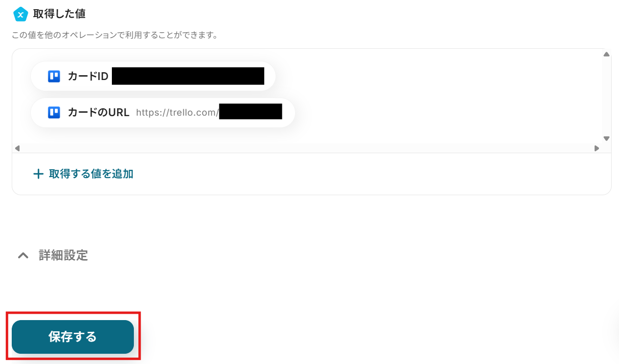 次に、Trelloにカードを作成する設定を行います。