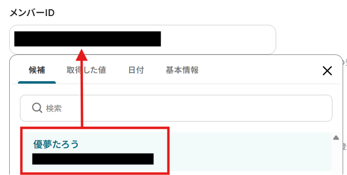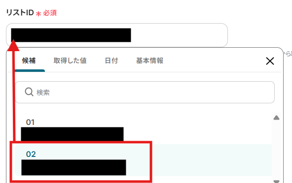 選択すると、自動でリストIDが自動で反映されます。