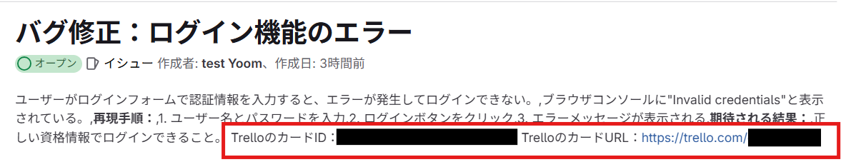 GitLabで新しいIssueが発生すると、自動的にTrelloに対応するカードが作成されます。