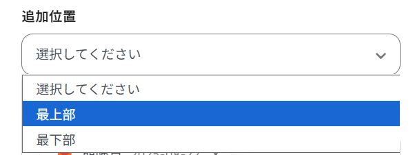 追加位置は、プルダウンから「最上部」「最下部」を選択します。