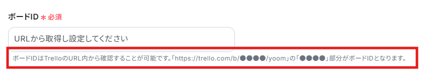赤枠内を参考にして、カードを作成したいボードIDを手入力します。