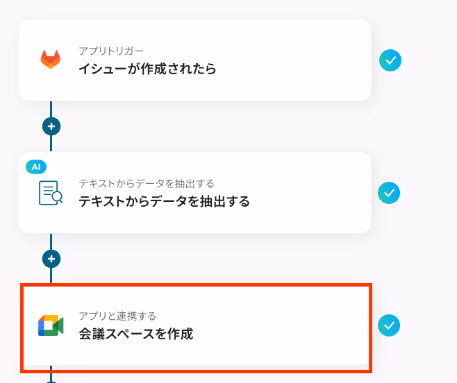 A:はい、Google Meetでも同様の連携が可能です。その場合は、Zoomの「ミーティング作成」部分を、Google Meetの「会議スペースを作成」アクションに変えてご利用ください。