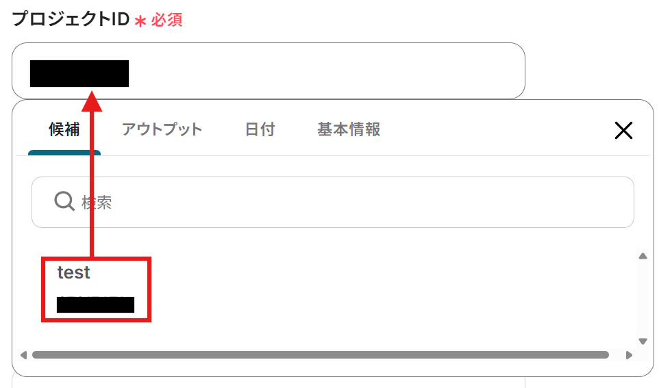 スクロールし、「プロジェクトID」を候補から選択しましょう。
