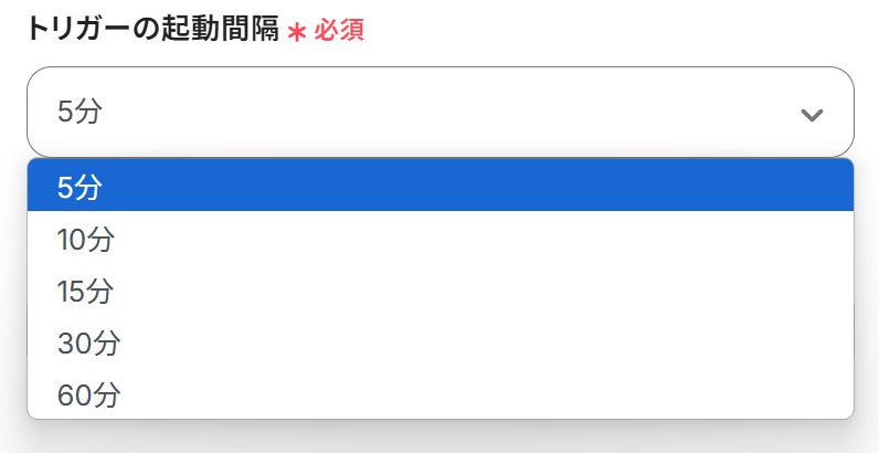 ・トリガーは5分、10分、15分、30分、60分の間隔で起動間隔を選択できます。