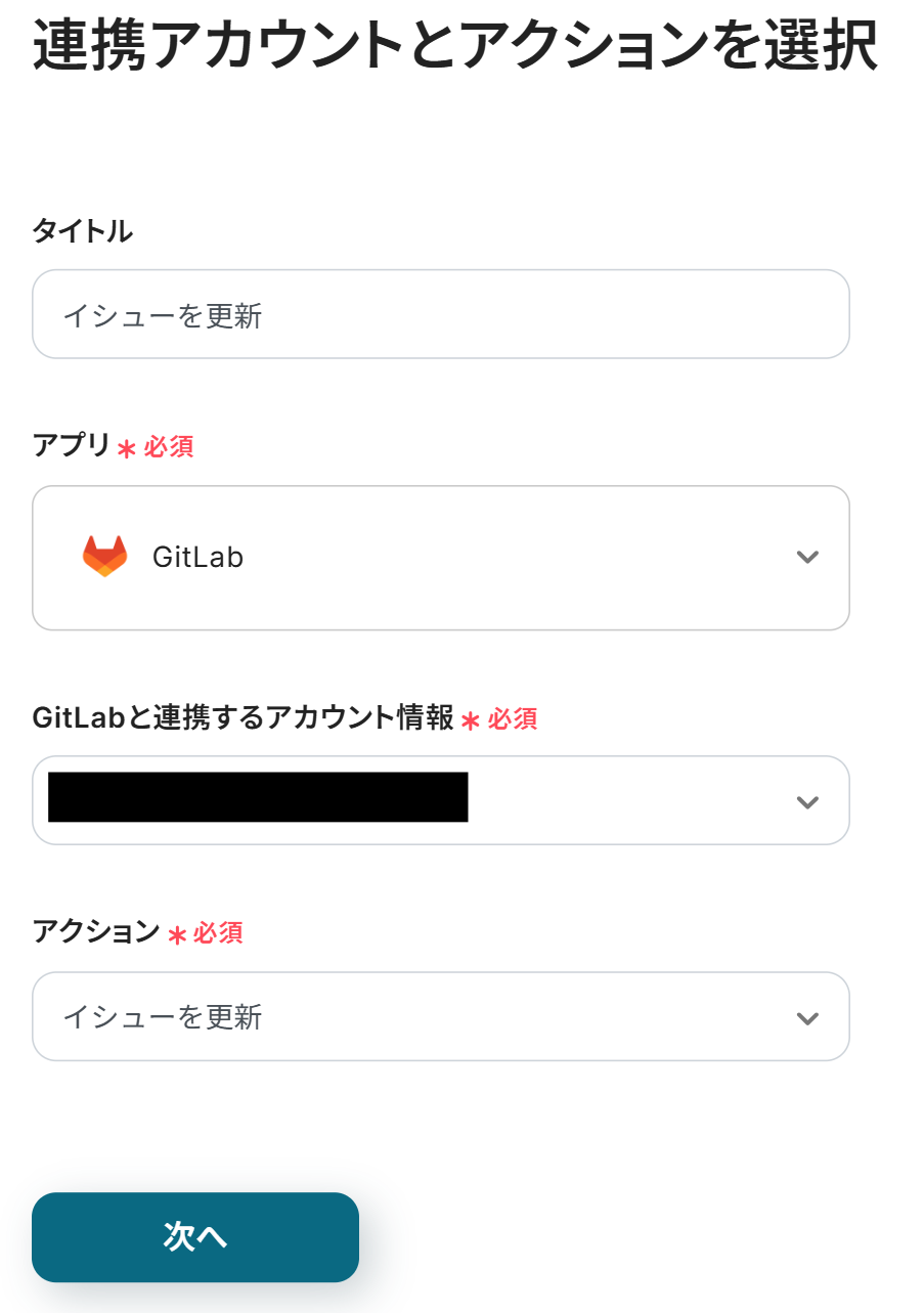 続いて、GitLabでIssueを更新する設定を行うため、「イシューを更新」をクリックしてください。