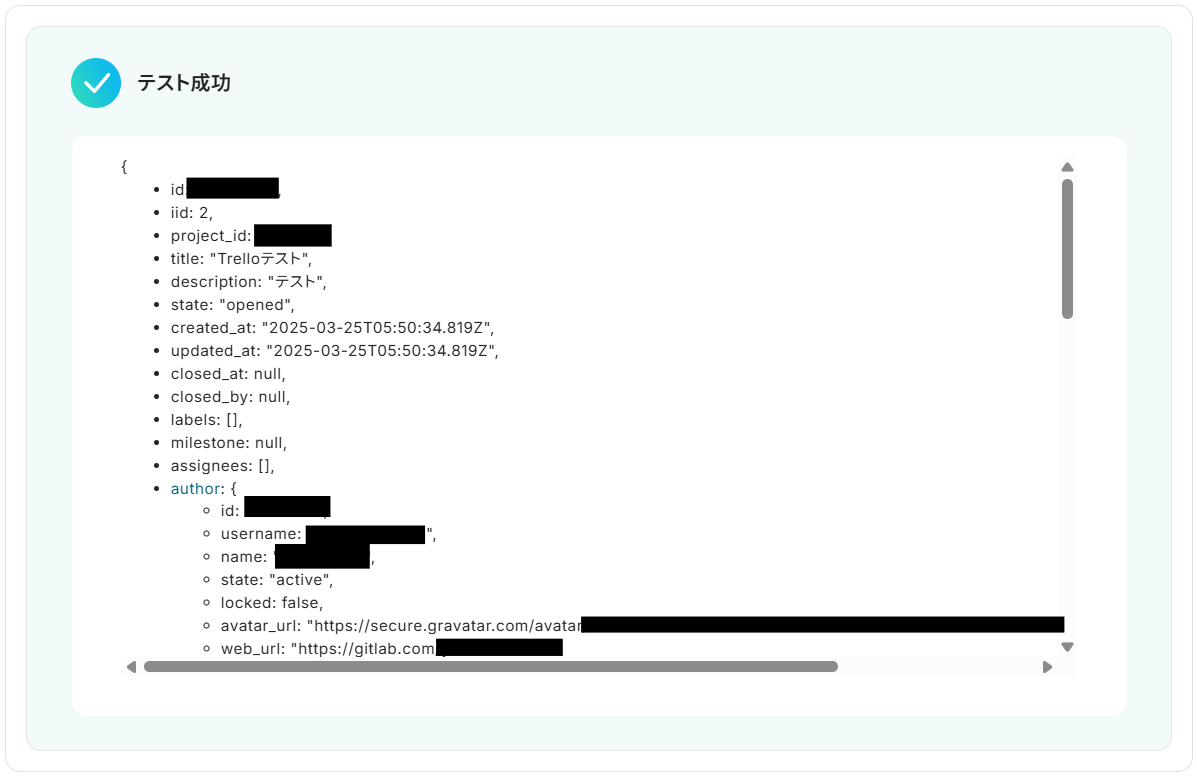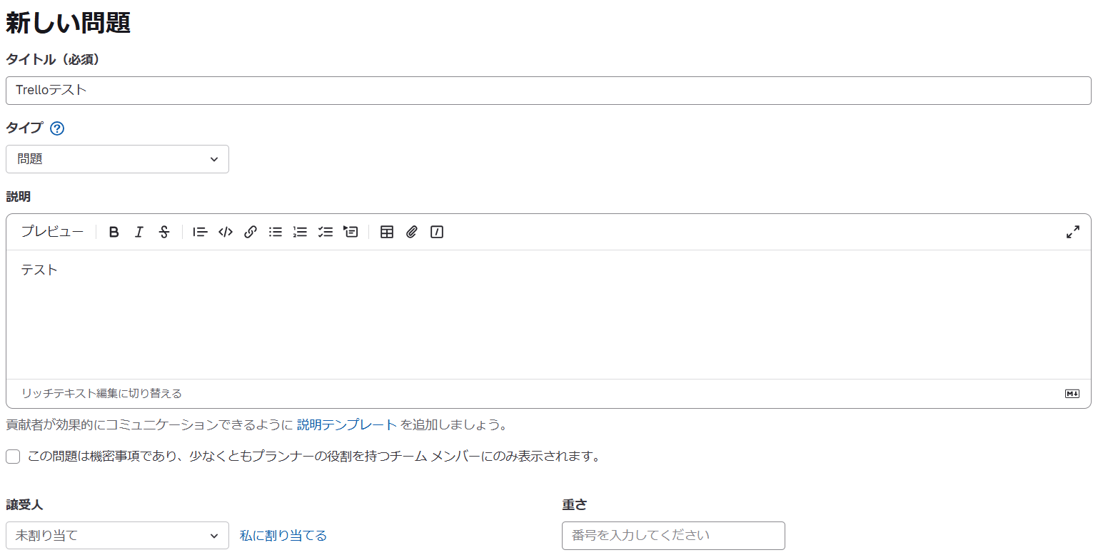 こちらでGitLabの課題の説明欄に、説明とカードIDが表示されます。