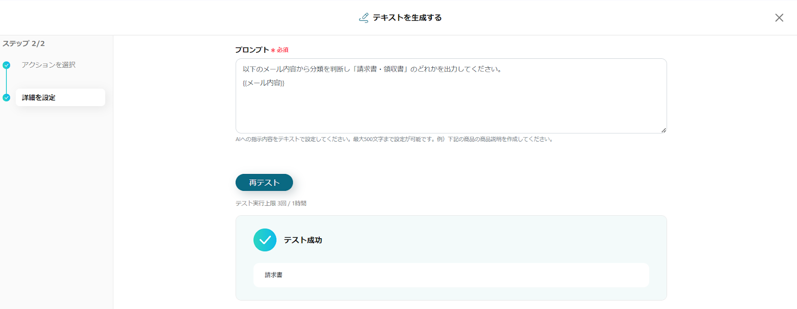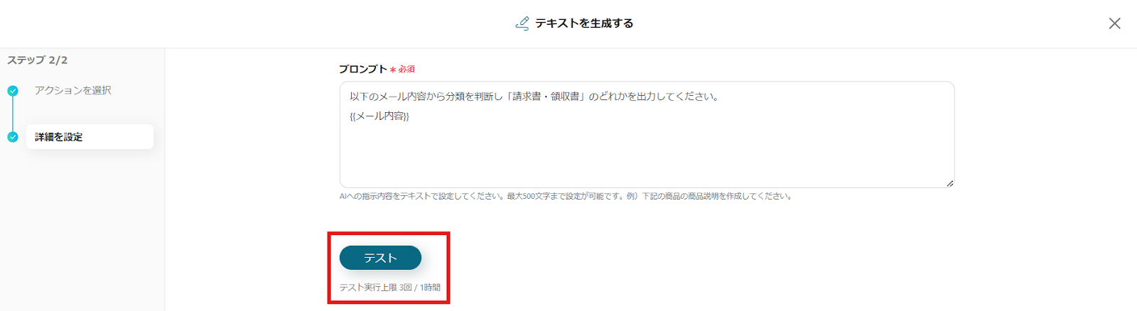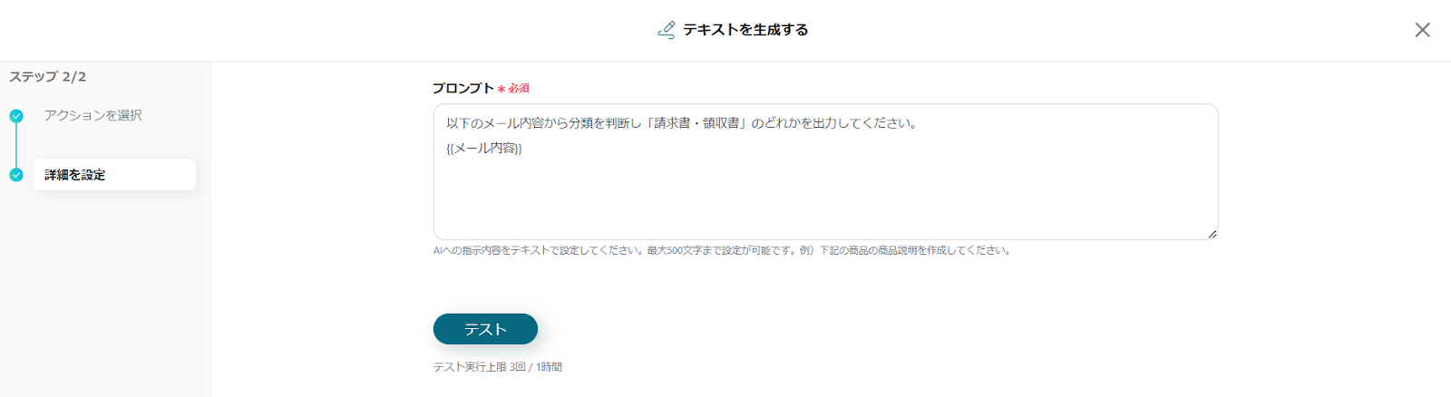 AIでテキストを生成する際に使用するプロンプトを設定します。