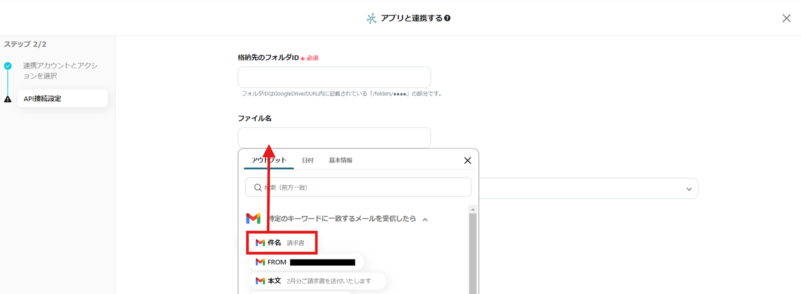 3.Google Driveの特定フォルダにファイルがアップロードされたら、そのファイルをGmailに添付して送付する
