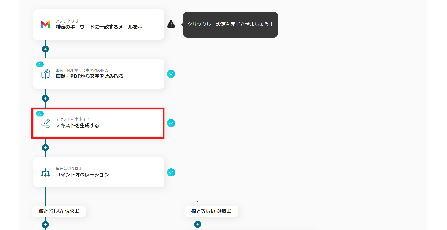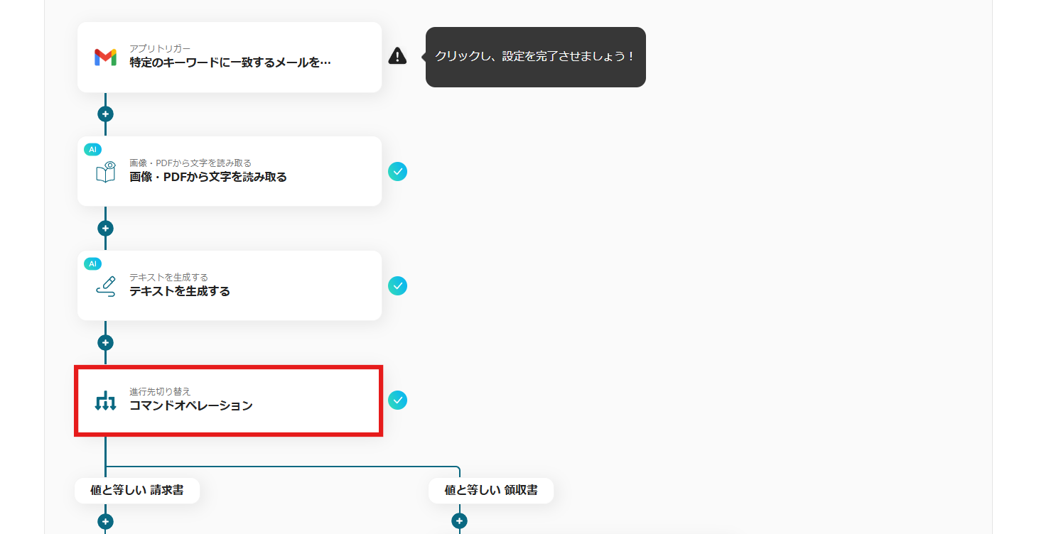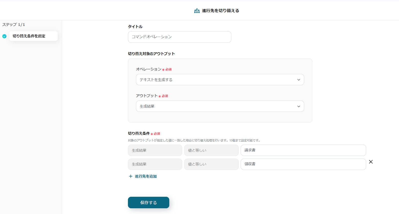 なお、分岐先が領収書の場合も同様に設定を行ってください。